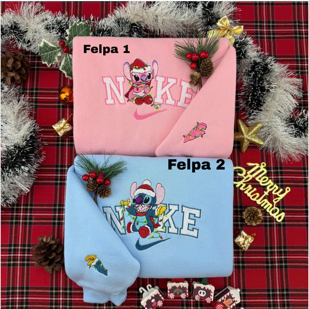 Felpa stitch ed Angel natalizi personalizzata
